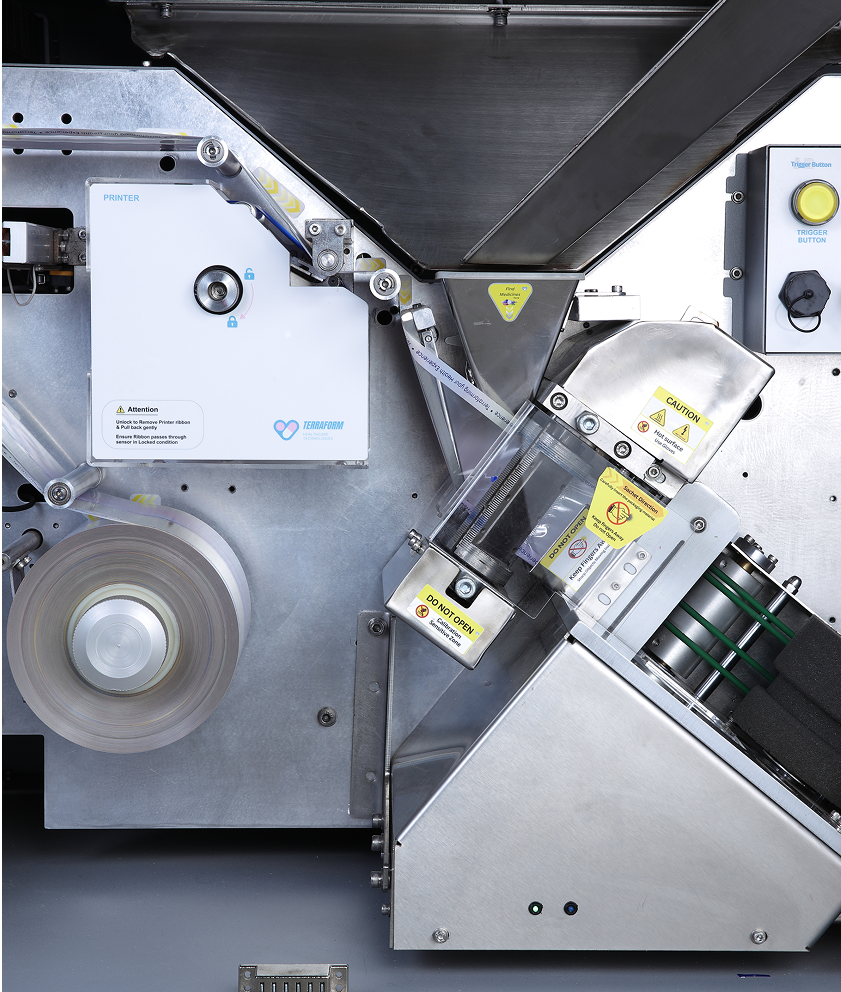Two compartment cassette design, impulse sealing and removable printer ribbon replacement reduces TAT